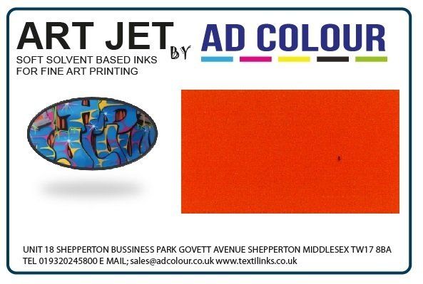 We also offer Fluorescent inks in all ranges, There are 6 colours available LUNAR YELLOW, STELLER GREEN, BLAZE ORANGE, LAZER RED, COMET BLUE, ASTRAL PINK these inks do not have good light fastness and should be used with caution when doing works that are to be displayed for a long time. These pigment only have a 3 mth light fastness when exposed to sunlight or bright LED or incandescent lighting.
